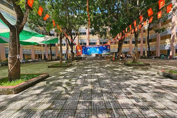 Sân trường là khu vực rộng, không gian mở.