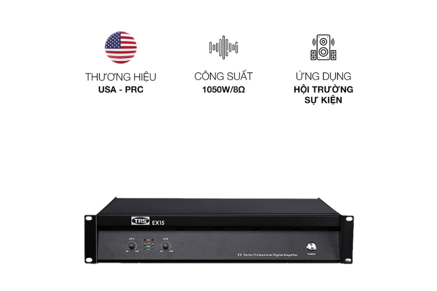 Trong các hệ thống âm thanh sân khấu, hội trường hay sự kiện lưu động, cục đẩy đóng vai trò then chốt trong việc quyết định độ mạnh, độ sạch và sự ổn định của toàn bộ dàn loa. TRS EX-15 là mẫu cục đẩy công suất thuộc series EX cao cấp, được thiết kế để đáp ứng các yêu cầu biểu diễn cường độ cao, mang lại hiệu suất khuếch đại mạnh mẽ, chất âm trung thực và độ bền vượt trội. Với thiết kế mỏng gọn chuẩn quốc tế và khả năng vận hành liên tục, EX-15 là lựa chọn lý tưởng cho các đơn vị tổ chức sự kiện, sân khấu chuyên nghiệp và hệ thống âm thanh biểu diễn.