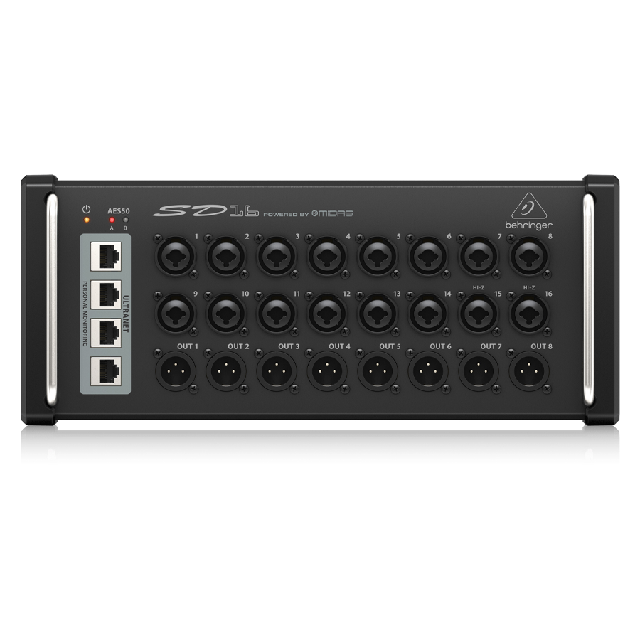 Stage Box giúp mở rộng số lượng đầu vào/ra cho hệ thống, trang bị 16 preamp Midas, 8 đầu ra XLR, kết nối qua giao thức AES50 SuperMAC của Klark Teknik, mang lại tín hiệu âm thanh chất lượng cao, ổn định và gần như không có độ trễ.