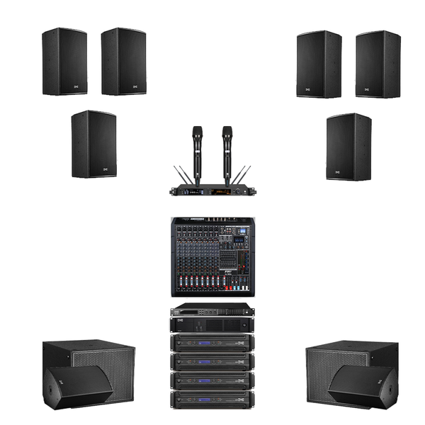 Dàn âm thanh hội trường TRS 03 được thiết kế dành riêng cho không gian hội trường có diện tích 200–300m², đảm bảo âm thanh phủ đều, rõ nét và có chiều sâu. Hệ thống loa full và loa sub đến từ thương hiệu TRS nổi tiếng, kết hợp với bộ khuếch đại công suất cao (LIVE-2.18B, D-8) cùng bộ xử lý âm thanh số APS-48, mang đến âm thanh mạnh mẽ, sạch và chuẩn mực.